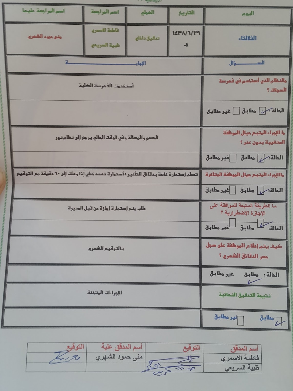استمارة متابعة الاداريات 1440