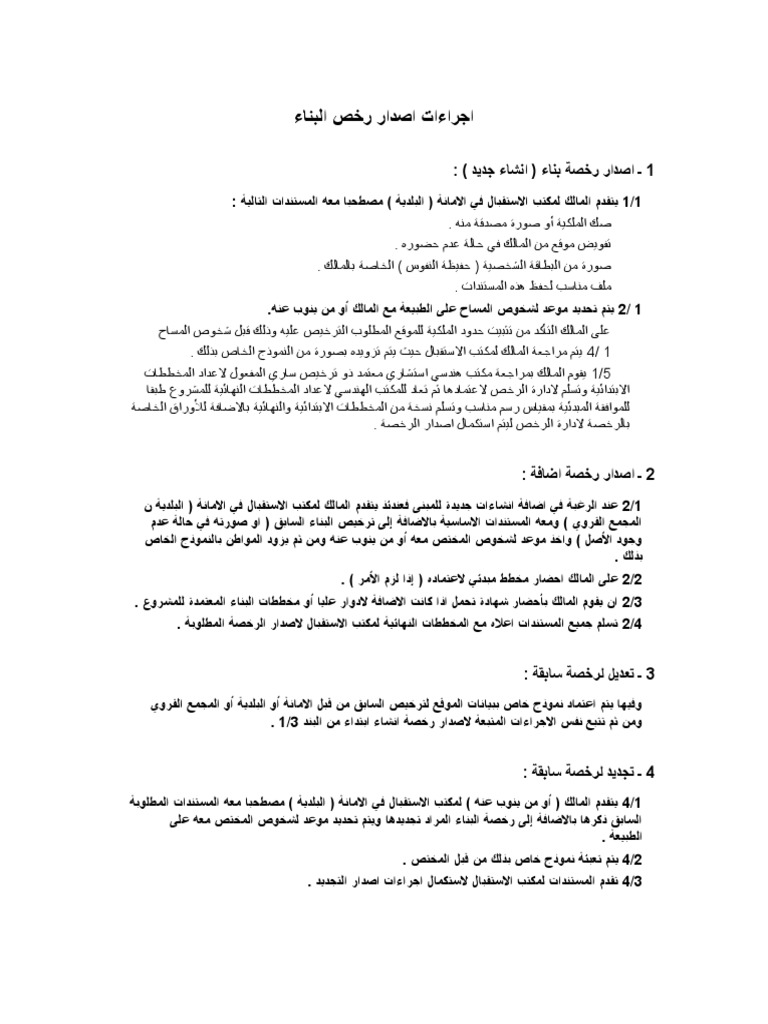 اجراءات اصدار رخص البناء Doc